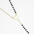 Fusion of edgy sophistication and mysterious allure. This necklace features a half-chain design seamlessly transitioning into a cascade of glistening black crystal beads, like a pathway to elegance with a touch of mystique.